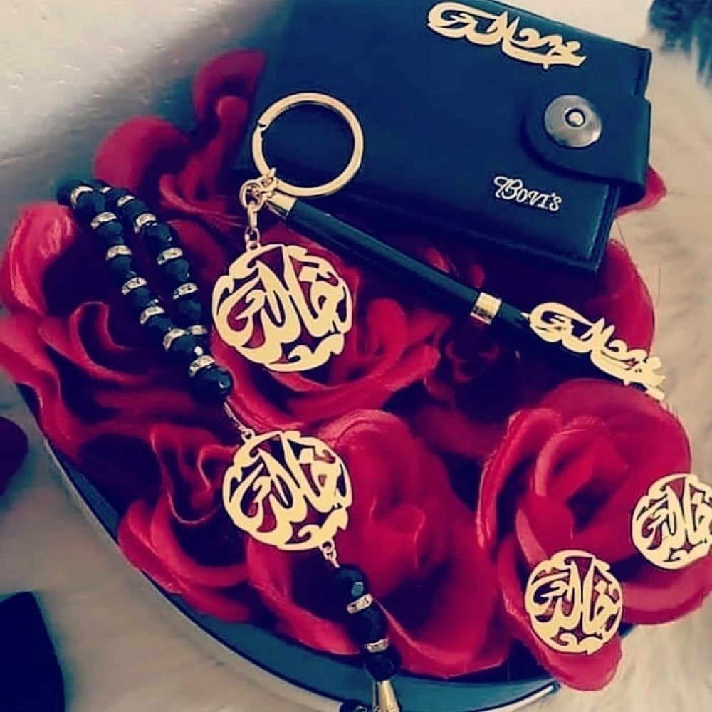 يتكون من/ سبحة-قلم-ميدالية-كبك-محفظة