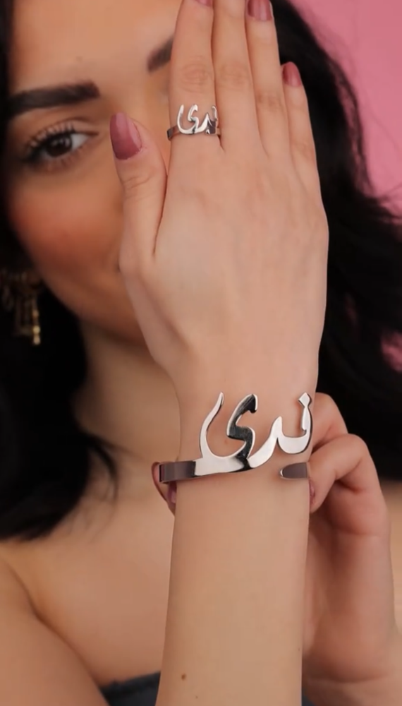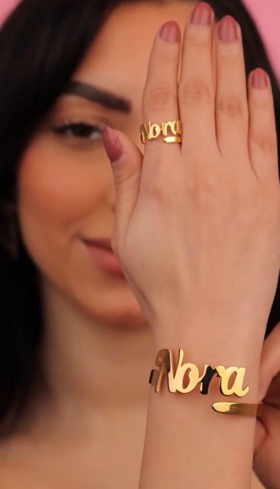 بكج مميزه جدا بتصميم الاسم ، مطلي بطلاء ذهب مع ضمان سنتين على اللون وطبعا مع علبة مخصصة وكيس.